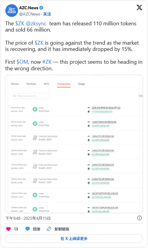 ZKSync被骇不仅影响了代币的价格,也让许多社区成员感到沮丧。热切等待空投分配的用户指责该团队管理不善且缺乏透明度。许多人质疑,在如此规模的项目中,如此关键的存取点和管理密钥怎么会受到损害。此外,一些社区成员注意到了一些引发严重指控的数据。具体来说,开发者最近发布了1亿个额外的代币。自从骇客攻击事件发生以来,他们已经售出了6,600万张ZK,进一步贬值了ZK的价值。