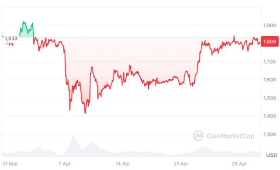 然而,自触及高点后,以太坊便进入了下跌通道。截至发稿时,已下跌超过一半。