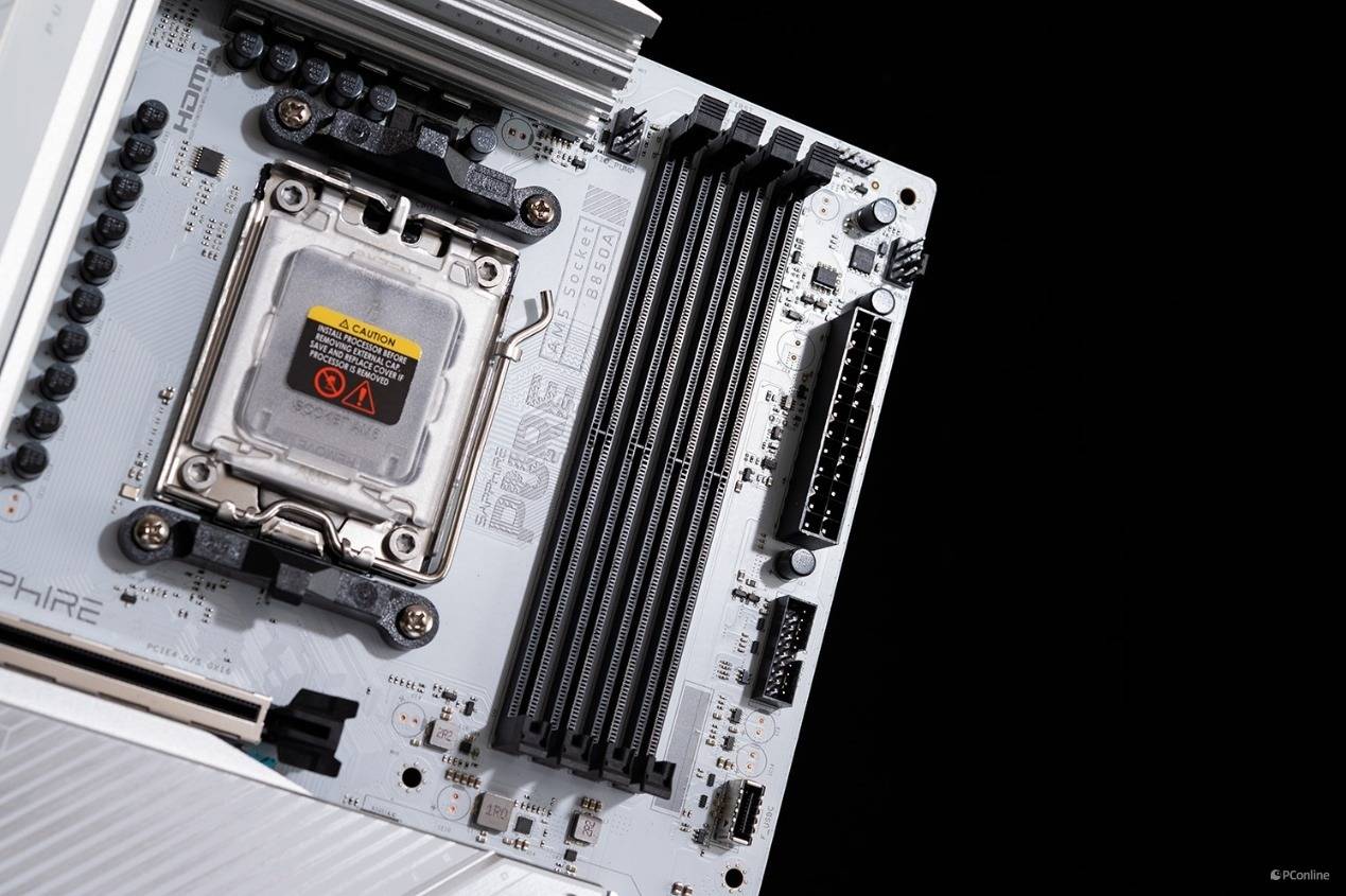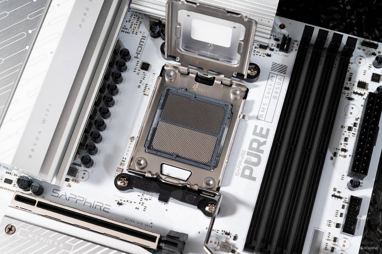 内部供电配置上也与蓝宝石PURE极地B850A WIFI主板保持一致,均为12+2+1相智能供电设计,用它来带9950X甚至9950X3D也完全没有问题!