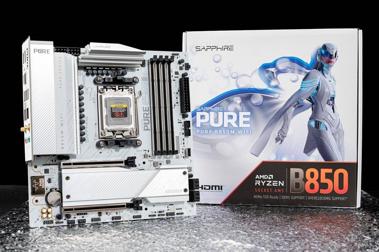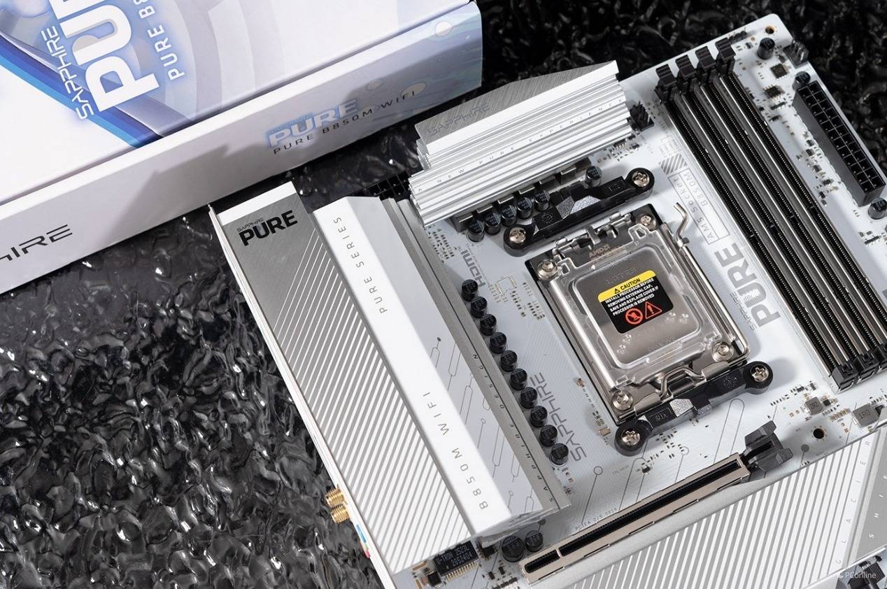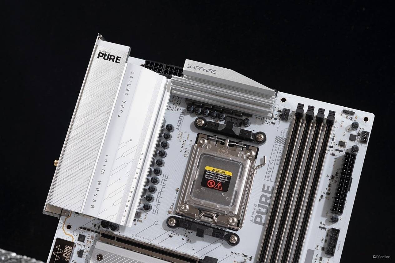 看过了蓝宝石PURE极地B850A WIFI主板,我们再来看看此次PURE极地家族的另一位成员——蓝宝石PURE极地B850M WIFI主板。