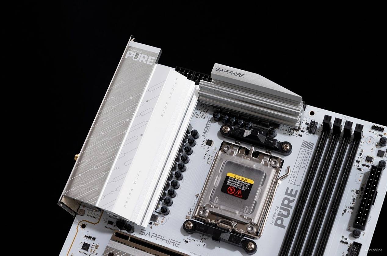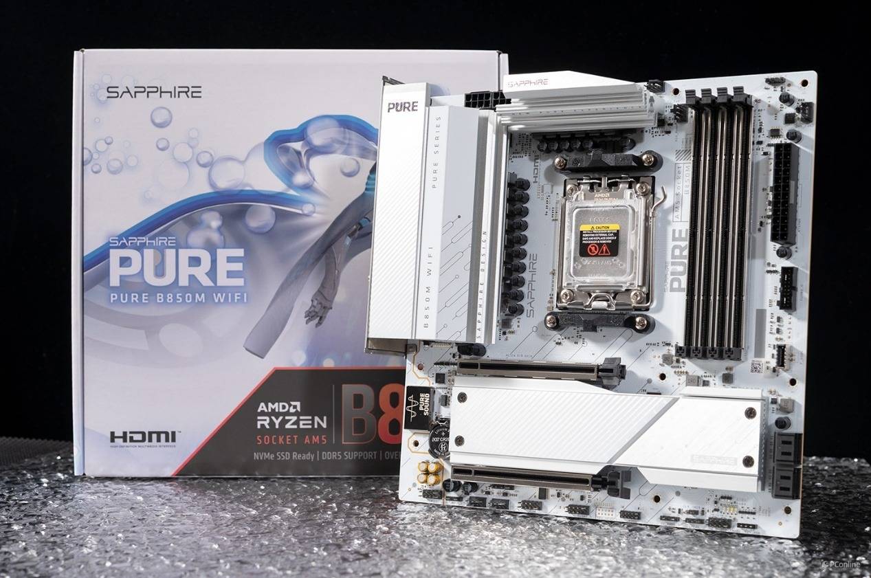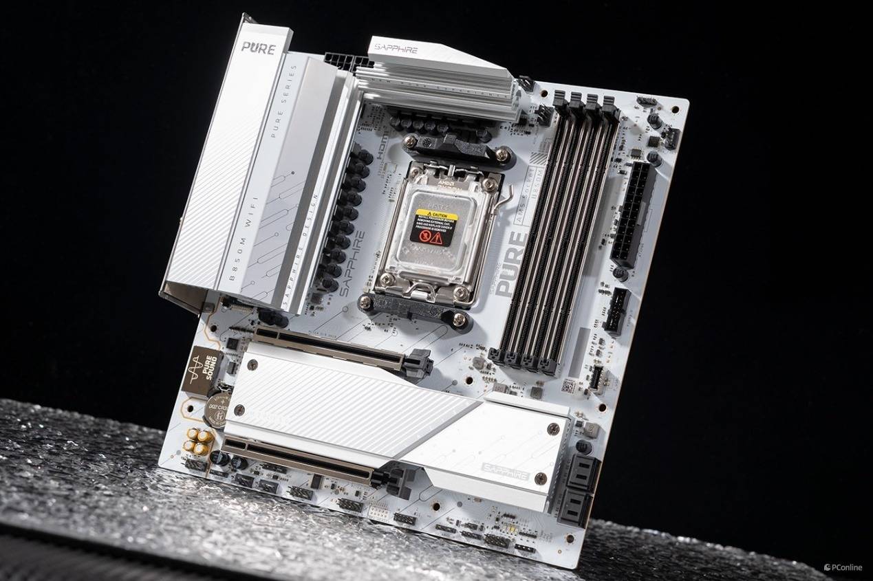 看过了蓝宝石PURE极地B850A WIFI主板,我们再来看看此次PURE极地家族的另一位成员——蓝宝石PURE极地B850M WIFI主板。