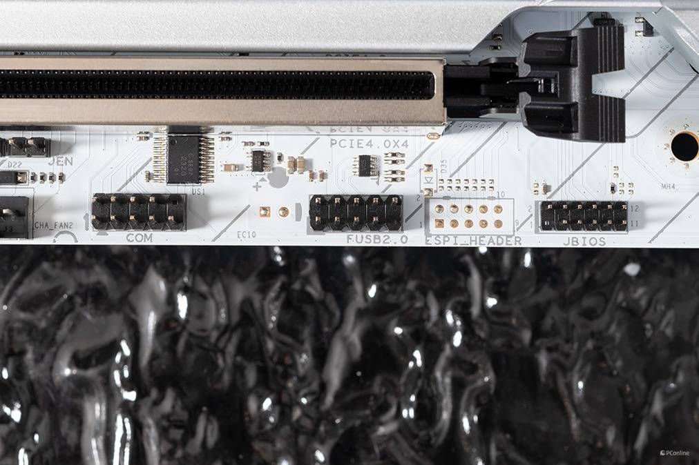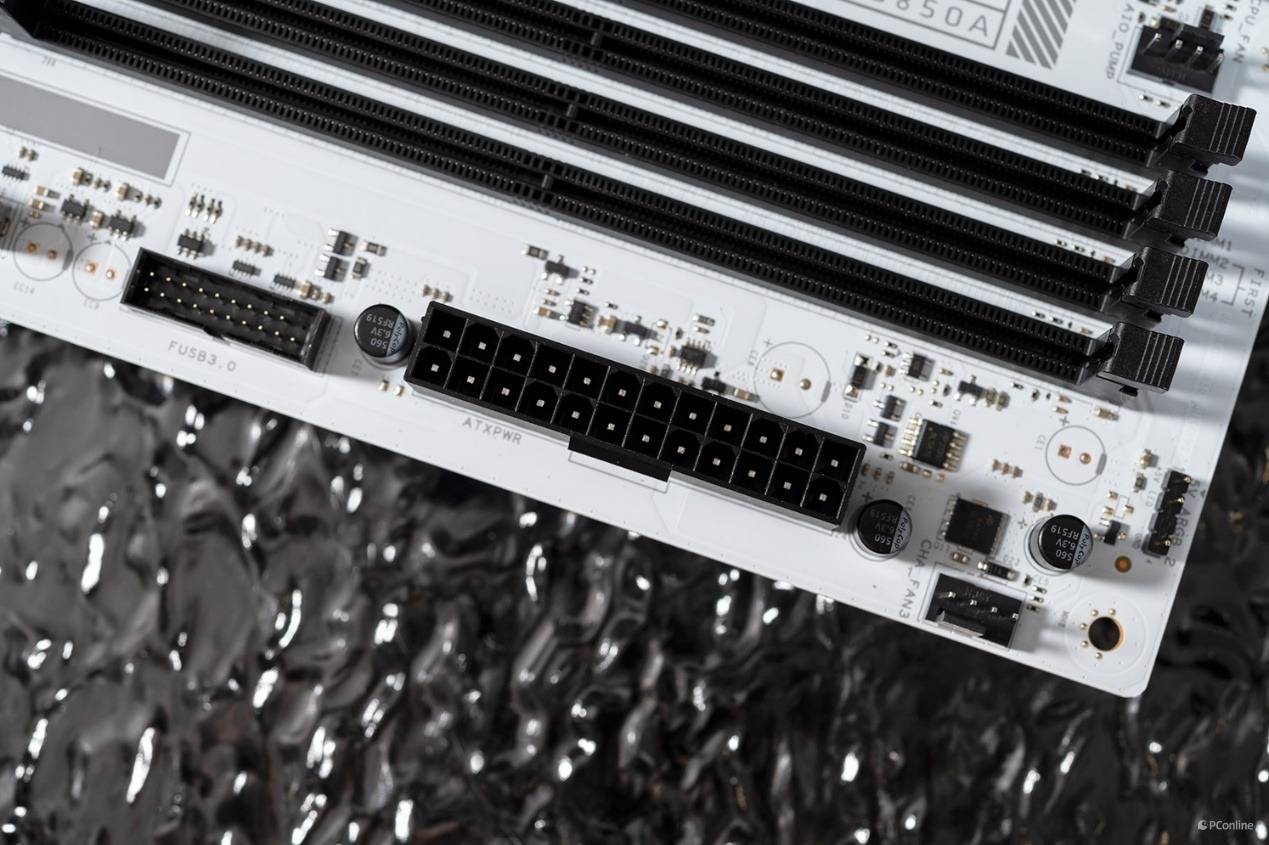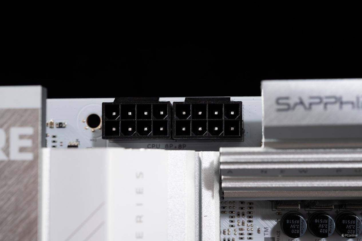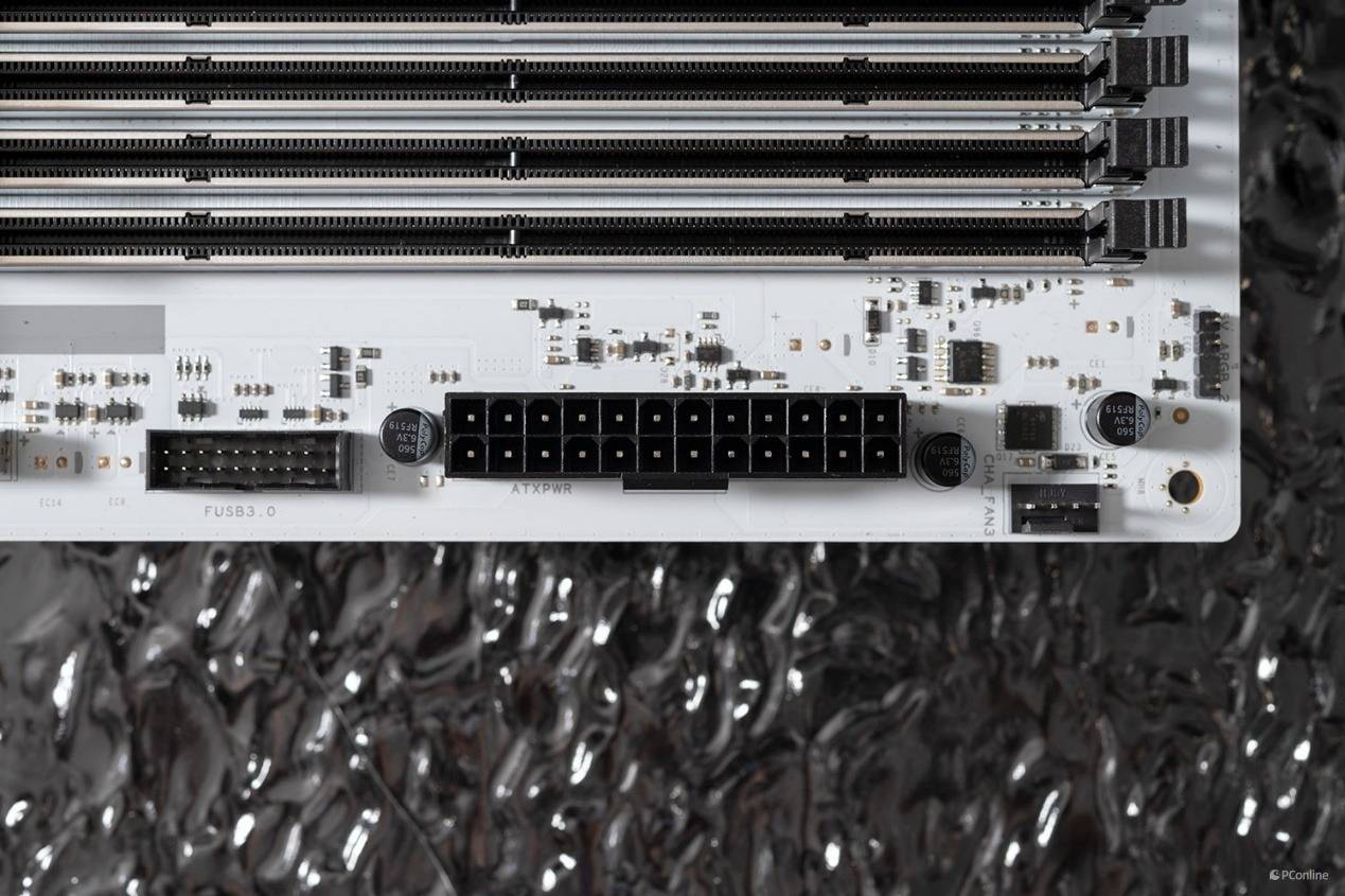 CPU的供电接口为双8Pin,主板的右侧依旧是24Pin供电接口,是硬件能够稳定运转的重要保障之一。