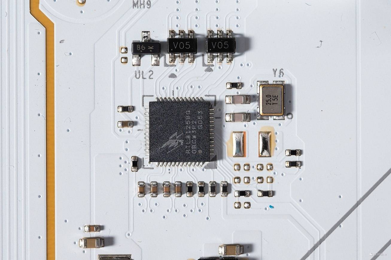 有线网卡芯片则位于声道音频接口下方,同样是Realtek 瑞昱出品,型号为RTL8125BG,带宽是此前千兆网卡的2.5倍。后缀上的这个BG表示该网卡为加强改进版,主要体现在延迟方面,能够进一步降低网络延迟。