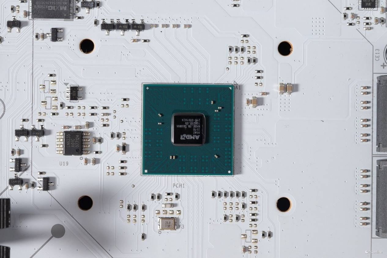 卸下外面的装甲以后就能看到B850芯片了,其主要负责I/O接口等一些外设接口的控制及提供部分PCIe通道。