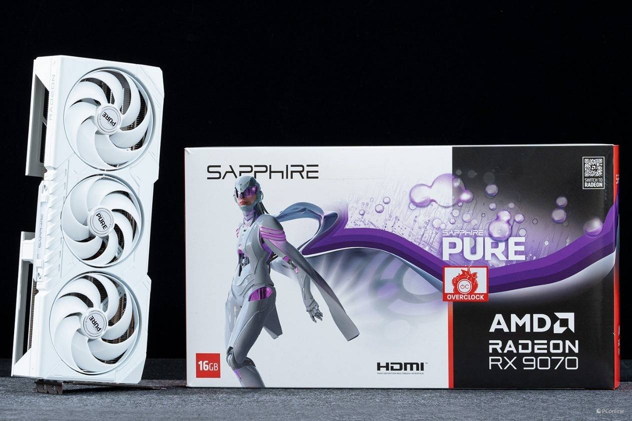 显卡方面,我们用的则是PURE极地同系列的蓝宝石PURE极地AMD RADEON RX 9070 16GB GDDR6 OC,整张显卡采用优雅的极地白作为主打色,同时在正面的导风罩上还加入了不少机甲风格的斜切纹路,将科技与美学完美的融合,犹如蓄势待发的极地武士一般。