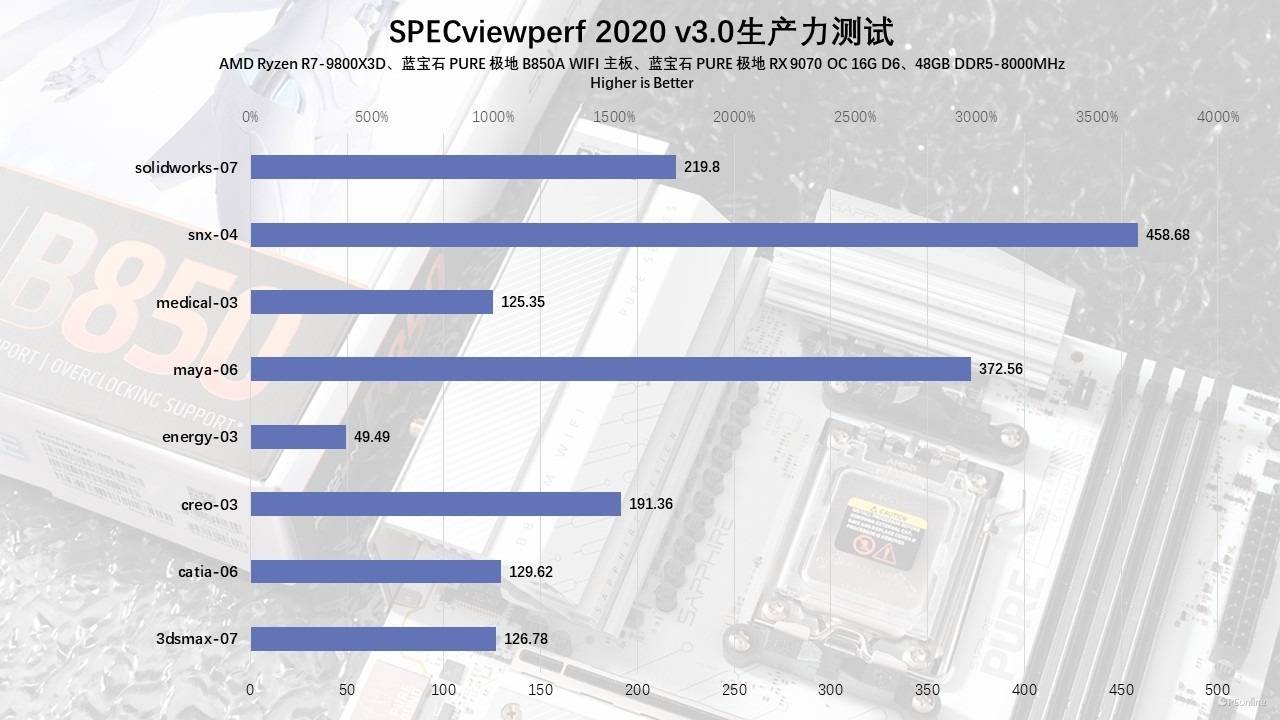 工业领域同样是AMD的拿手好戏,特别是对于我们这套以蓝宝石PURE极地B850A WIFI与蓝宝石PURE极地B850M WIFI+蓝宝石PURE极地AMD RADEON RX 9070搭建的3A平台,在我们的测试里,甚至部分项目能够超越隔壁N卡好几倍!