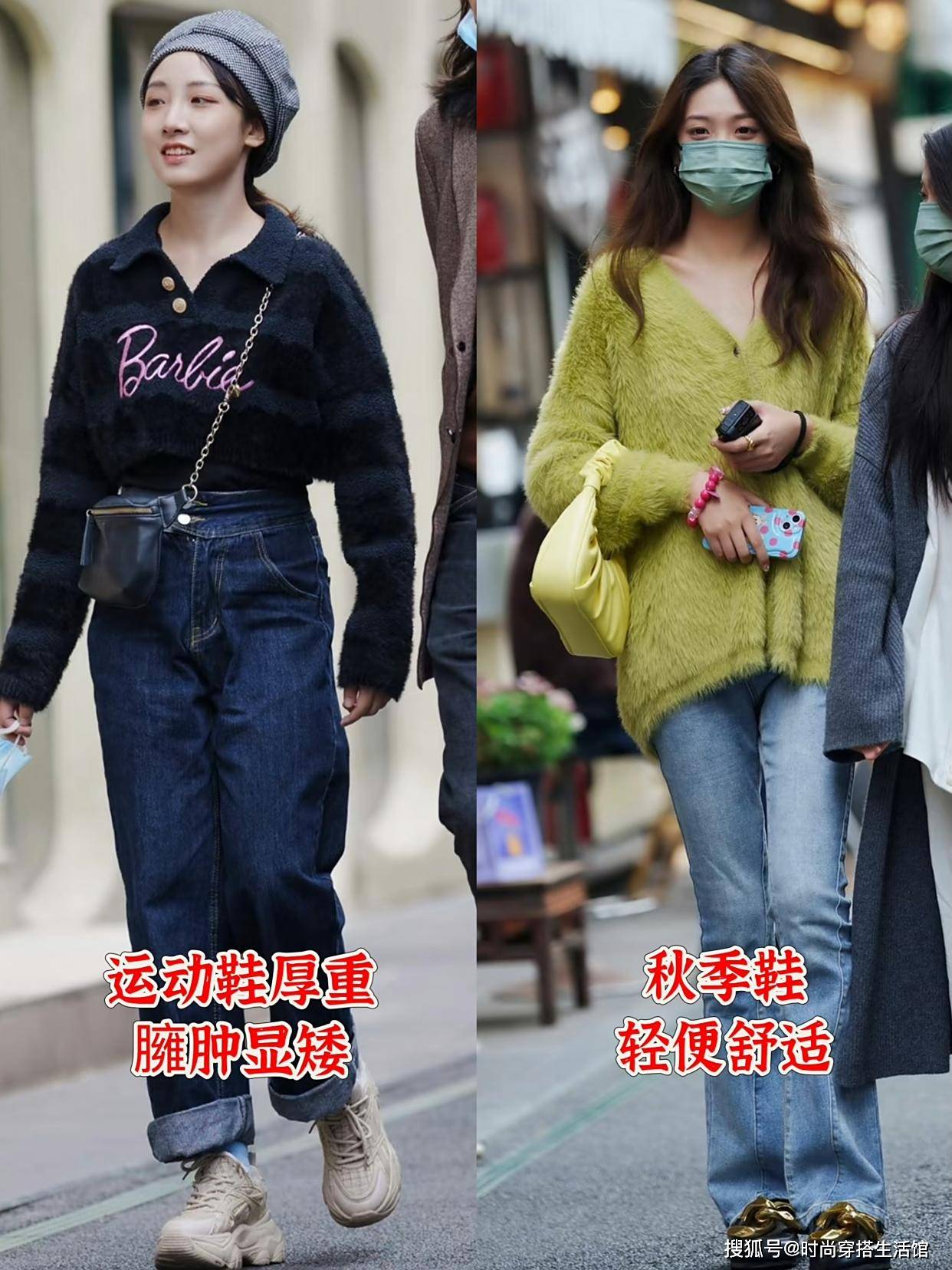 其次秋天穿牛仔裤搭配运动鞋几乎成为了大部分的选择,牛仔裤和运动鞋都是属于休闲款式,整体搭配在一起的话很难凸显出优雅气质。像成都街头今年秋天穿牛仔裤,运动鞋不再是牛仔裤的专属了,像是优雅的乐福鞋、丑萌丑萌的勃肯鞋和优雅有女人味的奶奶鞋。