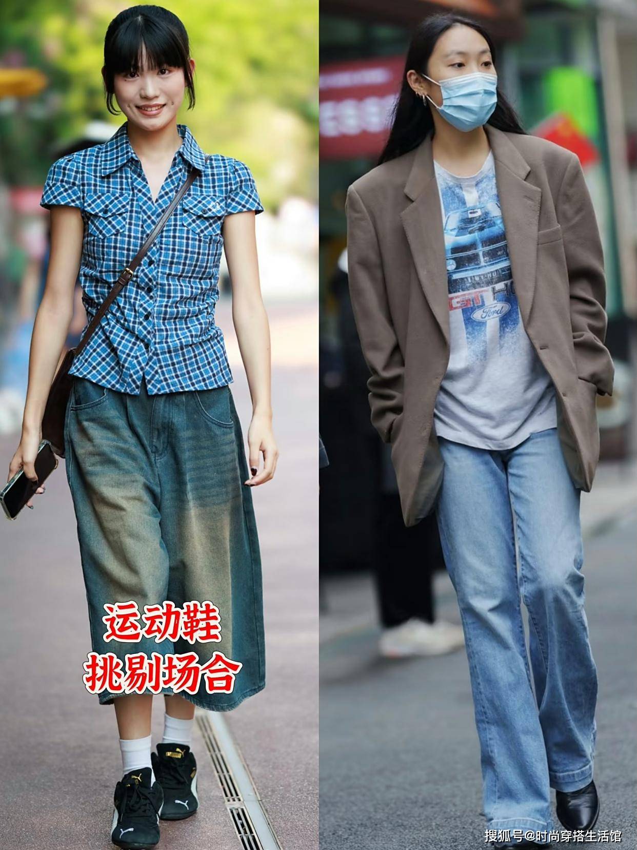 ⑴牛仔裤配运动鞋太平庸,显得路人感十足