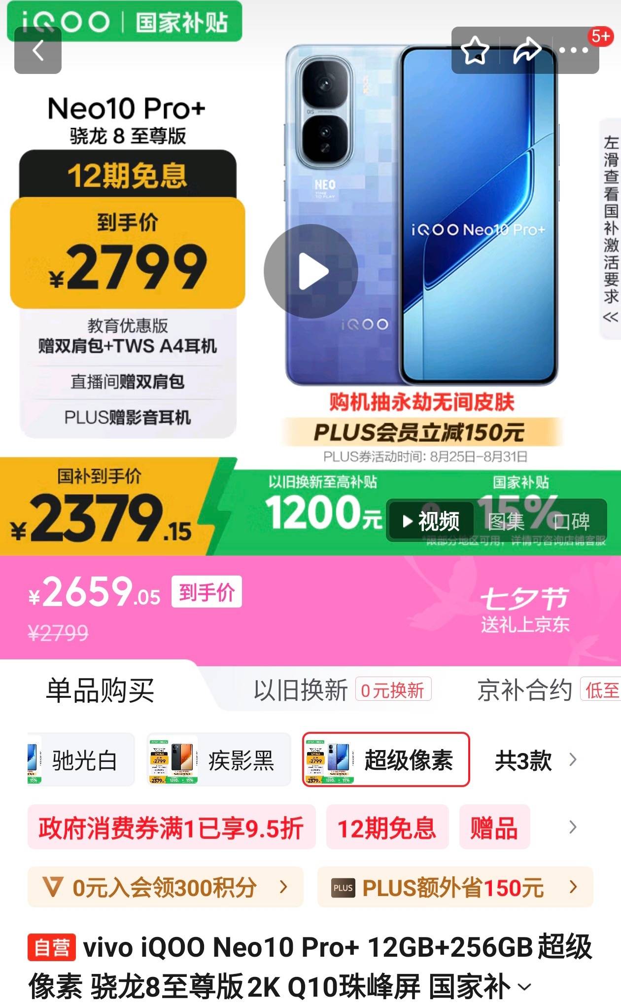 iQOO Neo10 Pro+:144Hz+2K大屏,视效拉满!