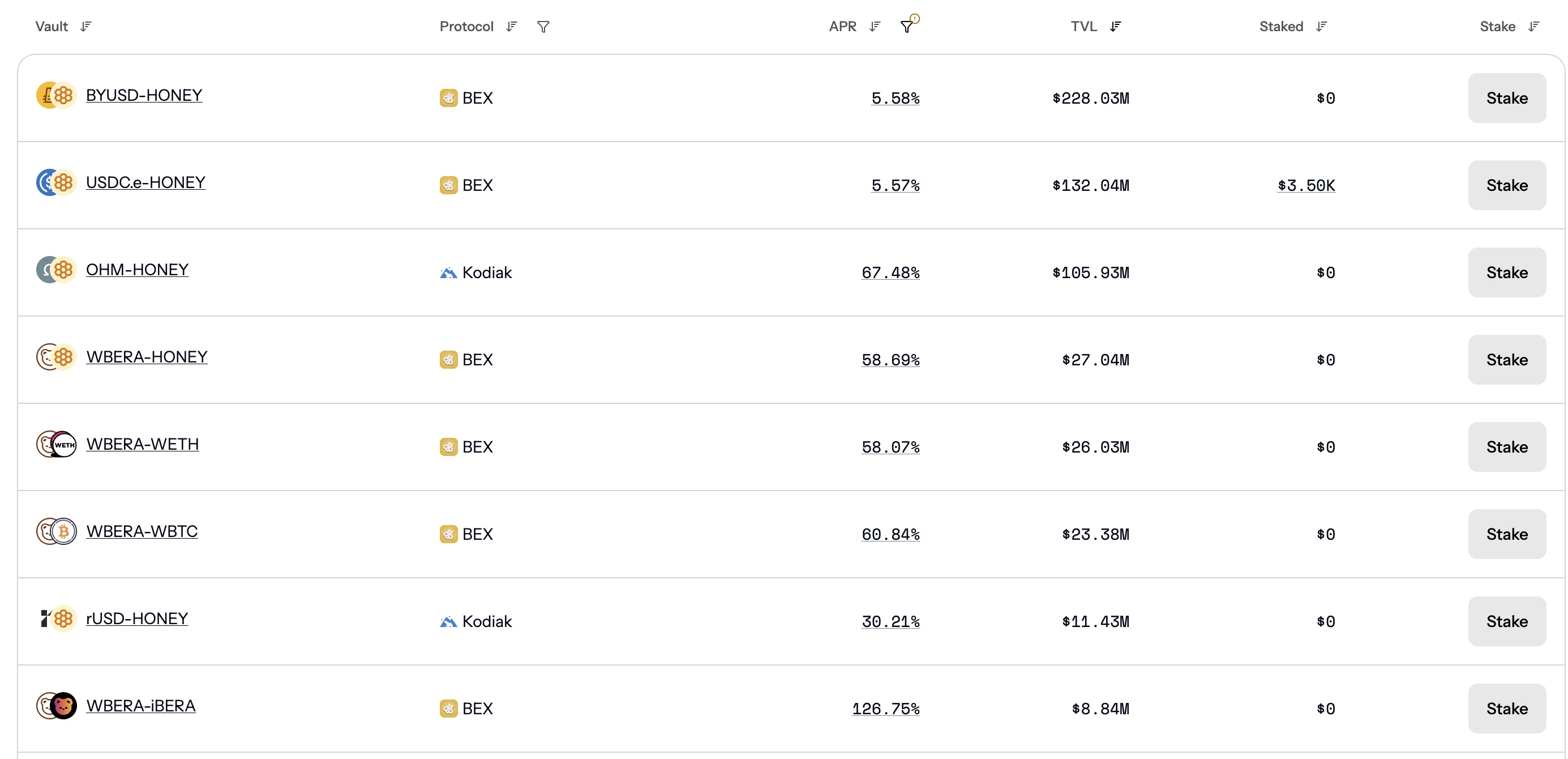 从获取潜在收益的角度出发,目前针对Infrared Finance的交互主要围绕iBGT和iBERA进行,尤其是iBGT。