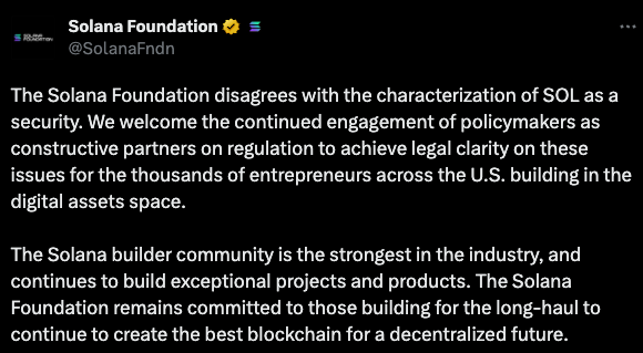 Solana基金会也发布声明,语气强硬地表示不同意SEC的指控。 他们认为,为数字资产领域提供明确的法律框架非常重要,这样才能让更多的创新者参与进来。 Solana还拥有强大的开发者社区,他们将继续构建优质的项目和产品。 这番话既表达了对SEC的不满,也展现了对自身生态的信心。