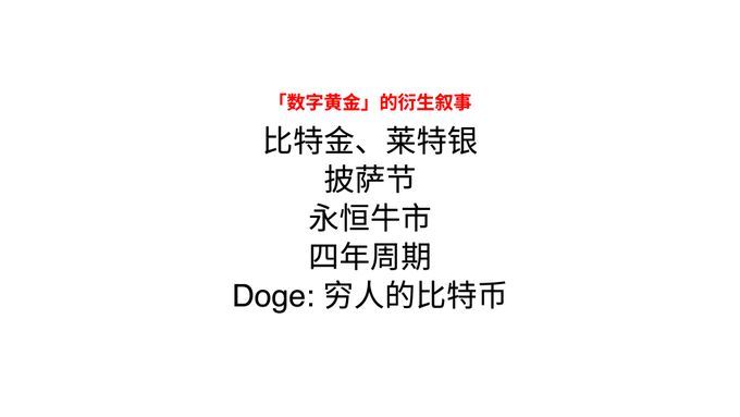 围绕着比特币数字黄金,还有很多衍生叙事: