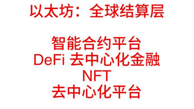 可以说,以太坊的叙事一直比较模糊。也有人提“全球结算层”,但显然没有广泛传播。总的来说,以太坊的叙事除了维塔利克这个人之外,还有以下几种,但都不是它独有的: