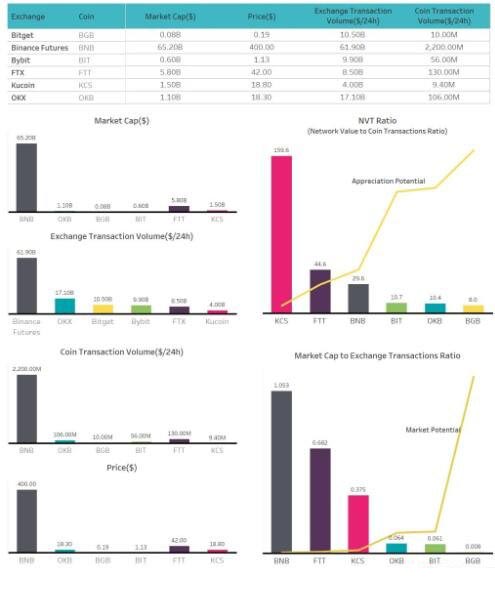 上图对比了 BGB 与其他平台币的各项指标,包括交易所交易量、平台币交易量、市值和价格。从这些数据来看,BGB 的价值可能被低估了。