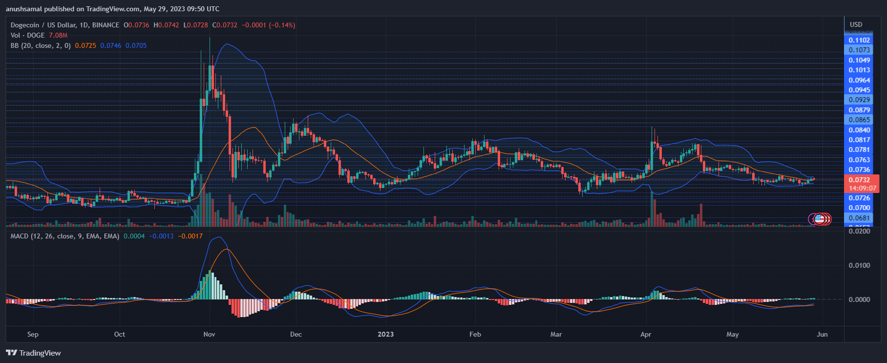 为了在接下来的交易日中确立看涨的主导地位,DOGE需要成功突破关键的阻力位。同时,整个加密货币市场的复苏,特别是比特币能够稳定在27,500美元以上,也将对DOGE的价格上涨起到积极的推动作用。