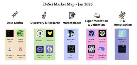 **DeSci 模式**:通过去中心化自治组织(DAOs)直接资助早期研究,科学家能够自由探索突破性想法,而无需受到机构繁文缛节的约束。