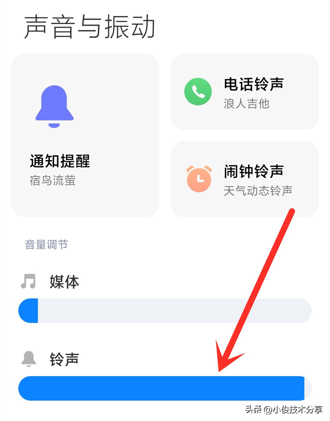 除了这个开关,我们还可以打开手机设置,找到【声音和震动】选项,根据自己的需求把来电铃声或通话音量调到最大。