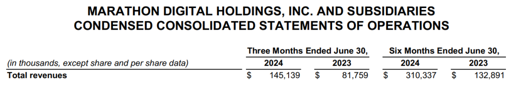 尽管 Marathon Digital 在今年第二季度的营收同比增长了 78%,从 8175 万美元增至 1.451 亿美元,但这一数字仍然低于分析师预期的 1.578 亿美元,差距约为 9%。这已经是 Marathon 连续第二个季度未能达到营收预期。
