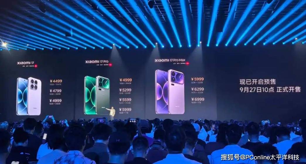 在价格方面,小米17起售价4499元起、小米17 Pro系列4999元起、小米17 Pro Max系列5999元起。所有新机现已开启预售,9月27日早10点正式开售。