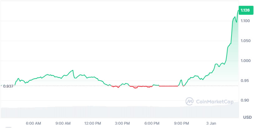 2024 年 1 月 3 日,SPX6900 经历了重大突破,飙升至 1.12 美元,并短暂触及 1.13 美元的历史高点。这一激增伴随着交易量的大幅增加,在交易时段达到 6150 万美元。