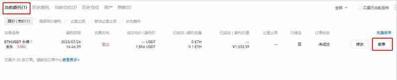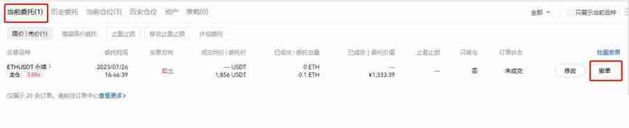14、选择账户模式、委托类型,输入价格、数量,点击买入开多(看涨)或卖出开空(看空)。未成交的委托挂单可单击撤单撤销委托。此处以开空为例。