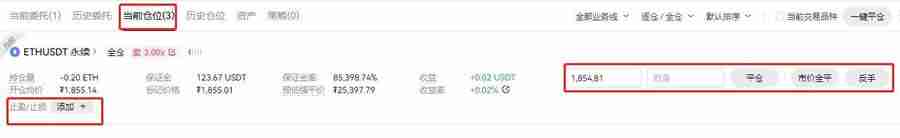 16、您可在持仓界面设置止盈止损,还可选择平仓,输入平仓价格和平仓数量确定平仓,或选择市价全平完成平仓操作。