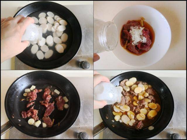 制作过程: 将铁棍山药去皮后切成片备用,烧锅水加入1小勺盐,将山药片放进锅中焯煮两、三分钟后捞出备用; 牛里脊肉切成片后加入少许盐、淀粉、料酒和生抽等调味料拌均匀腌制3分钟备用。烧热锅放入适量的油,加入少许蒜片进锅煸炒香,加入腌制好的牛肉片放进锅中翻炒至变色, 加入焯好的山药片放进锅中翻炒几下,再加入1勺生抽上色,加入少许盐调味,翻炒均匀后盛入盘中,撒上少许葱花即可。