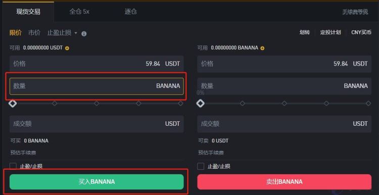 9、Enter the amount you wish to buy, and click 【Buy BANANA】 to complete the BANANA Coin transaction.