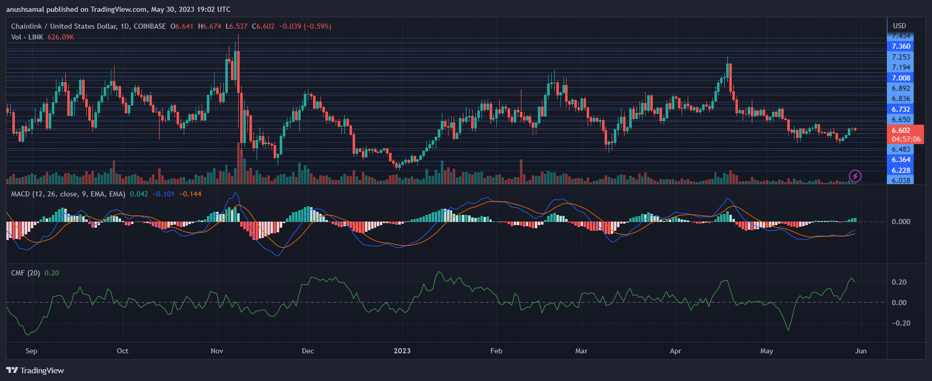 进一步的下跌可能会导致 LINK 在 6.00 美元附近交易。LINK 上一交易日的成交量偏低,表明市场买家数量有限。