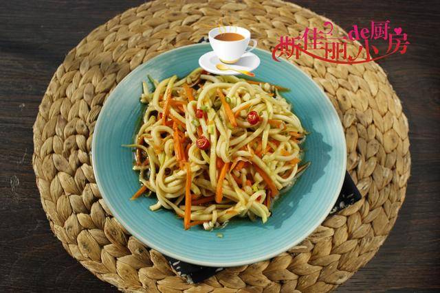制作:提前将洗净笋瓜和胡萝卜去皮后刨成细丝备用; 烧锅水加入少许盐,将准备好的笋瓜丝和胡萝卜丝放进锅中焯熟后捞出放入大钵中。 在大碗中加入适量的盐、少许蒜末和红椒圈进去;加入适量的生抽、香醋、自制的辣椒油等调味料汁拌均匀即可。