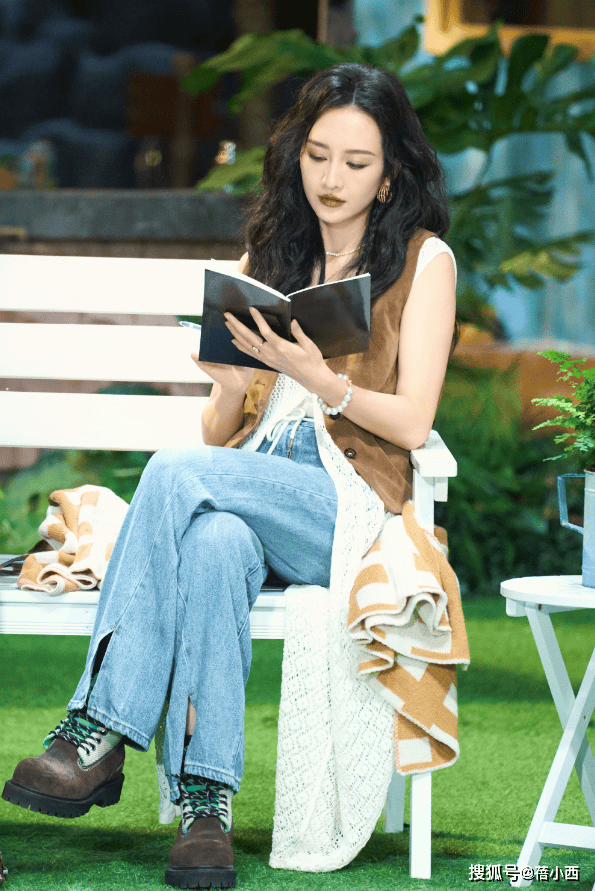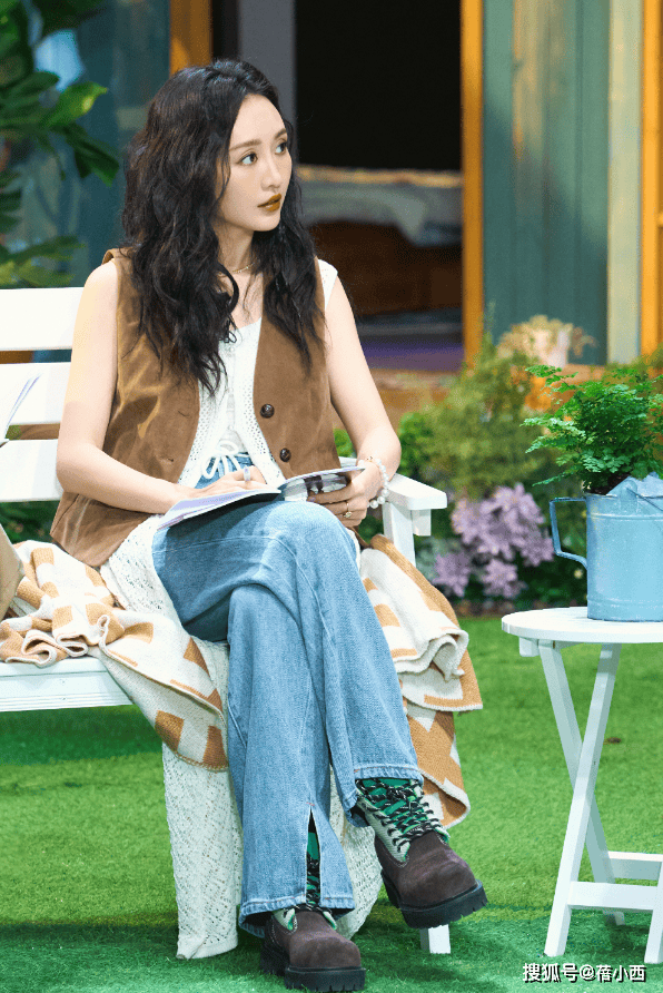 室内有点热的话,在白内搭不变情况下,可穿一件马甲,露出纤细的手臂。马甲选短款更好,抬高腰线是每个女生都喜欢的点,因为能不费吹灰之力便拉长腿部线条。腿上配的是经典又时尚的蓝色牛仔裤,裤腿松量刚刚好,比较吸睛的是裤脚设计,有明显的开叉设计,增强了整体穿搭时髦度。