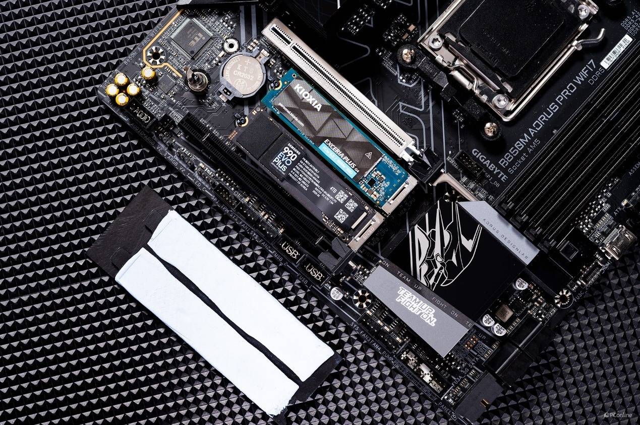 为了应对PCIe 5.0硬盘的散热需求,技嘉也是准备了厚实的散热装甲,还采用了快易拆设计,硬盘的安装也有M.2快易拆加持,设备的固定与散热甲的安装均能一步完成。