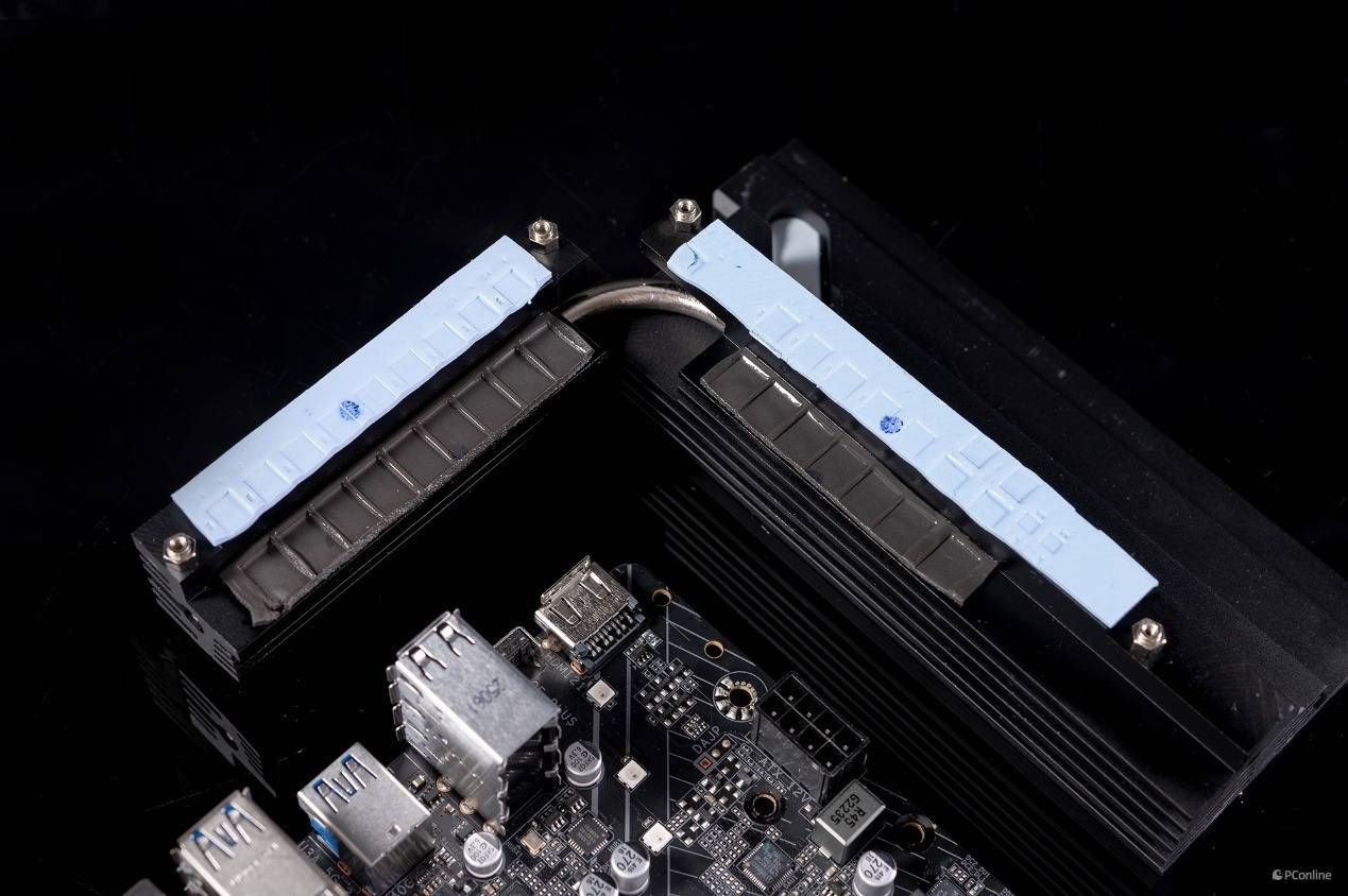 内部有高散热系数导热垫加持,确保主板的运转稳定。供电电路的两块金属散热件之间还有一根镀镍铜管,可以提高整体的散热效率,轻松驾驭X3D系列处理器。