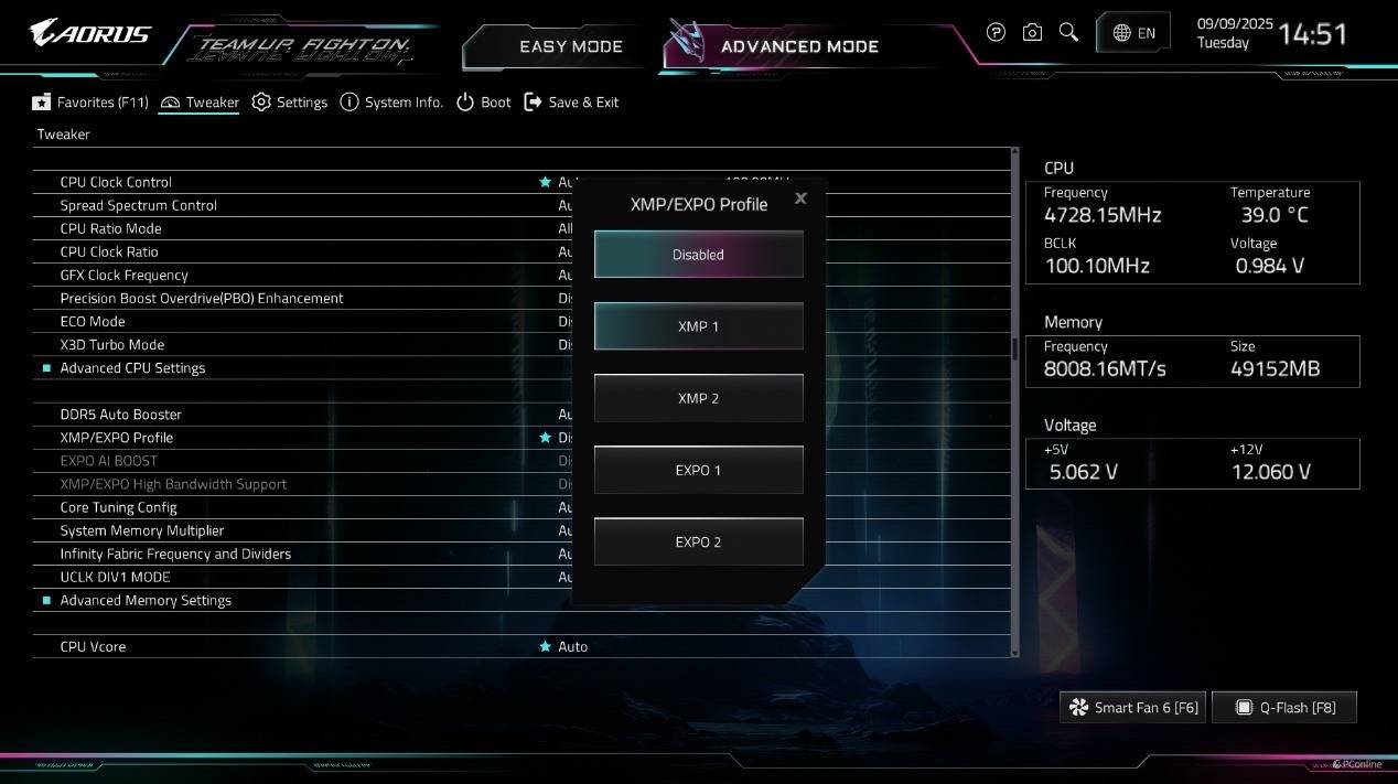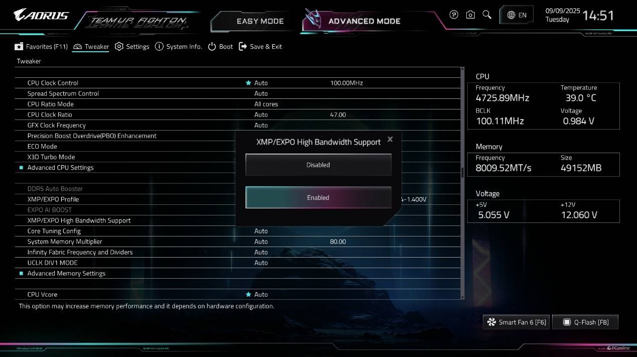 针对内存的设置则包含我们常用的一键XMP/EXPO,玩家能够一键套用内存厂商提供的参数,实现内存性能的提升。