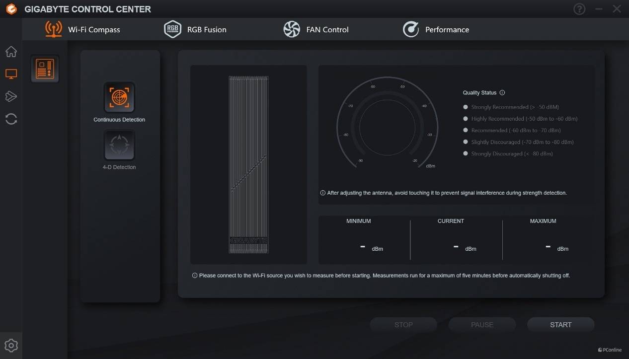 另外,上面我们介绍了这款主板的无线网络部分时提到它使用的是Realtek Wi-Fi 7 RTL8922AE 芯片组,技嘉为了让玩家能够有更好的网络体验与信号效果,在GCC内部还内置了 Wi-Fi 指南功能。可以持续检测信号强度,或手动调整天线的四个方向检测信号强度。
