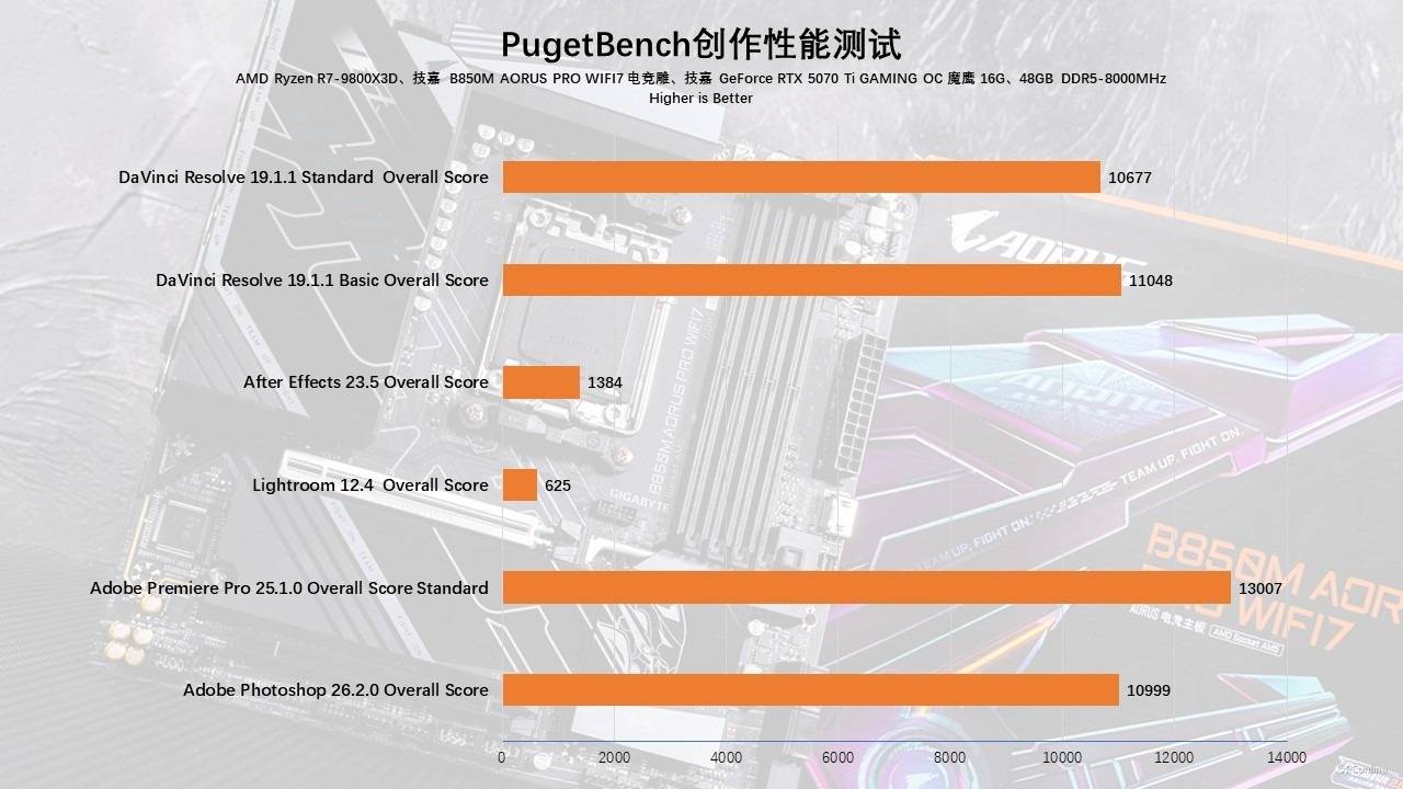 实测在技嘉B850M电竞雕主板这套平台上,展示出了中高端主机的实力,无论是简单的图像处理还是压力较大的视频剪辑与渲染层面,都有不错的成绩,基本能够满足专业用户的需求。如果你是一名创意工作从业者,这套平台绝对能满足你的工作所需。