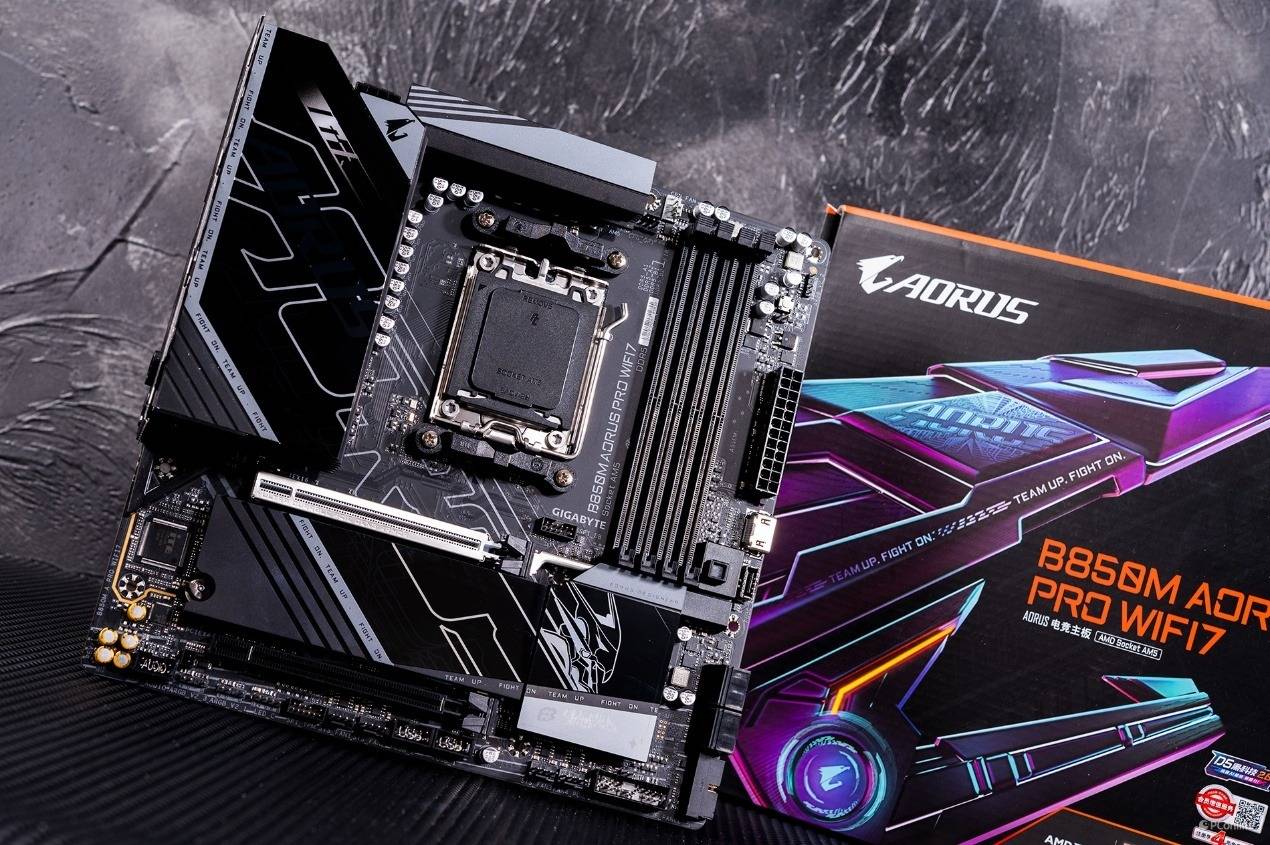 而在众多B850主板中,技嘉B850M AORUS PRO WIFI7电竞雕主板凭借其出色的性能表现和堆料级的配置,吸引了不少玩家的目光。这款主板不仅完美支持AMD Ryzen 9000系列处理器,还融入了Wi-Fi 7高速无线网络、PCIe 5.0扩展以及DIY友好的设计理念,为玩家打造了一个兼顾性能与未来扩展性的理想平台。无论是硬核游戏玩家还是专业内容创作者,技嘉B850M AORUS PRO WIFI7都能带来令人满意的装机体验。