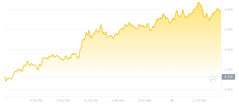 时间拨回到2024年10月15日,加密货币市场略显波动。其中,波卡币(DOT)的价格引起了我的注意。截至当天下午1点,DOT的价格来到了4.3953美元。虽然涨幅不算惊人,但过去24小时内3.7%的涨幅,加上超过13.4亿美元的交易量,似乎预示着一些积极信号。