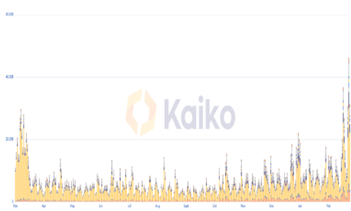 虽然3月6号交易量稍微降了点,但还是保持在332亿美元的高位。其中,币安交易所的交易量占了每日交易量的七成多,达到了180亿美元。这说明大家对比特币的热情还是很高涨啊!