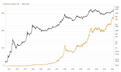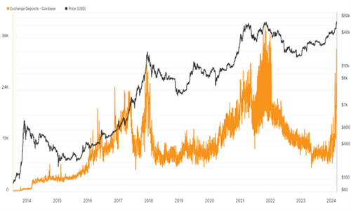 还有,转移到美国最大的比特币交易所——Coinbase的数量也正在接近2022年的高点。这意味着投资者可能会在当前价格水平上为获利而进行定位。不过,正如过去所见,比特币价格的上涨并不仅仅发生在牛市高峰期。所以,大家还是要保持警惕,密切关注市场动态和价格变化。
