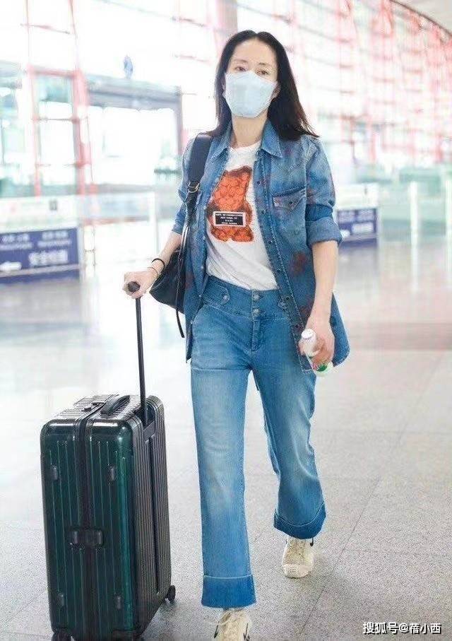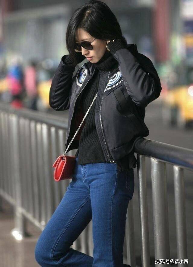 日常搭配,还可以学刘敏涛选择做旧水洗蓝牛仔套装,外套的版型宽松随性,袖口卷起的细节增添了几分利落感。牛仔面料的复古纹理更是自带岁月韵味,轻轻松松打造出率性的美式复古风,作为外套叠穿的时候,可以为造型注入层次,让风格更具多元化。