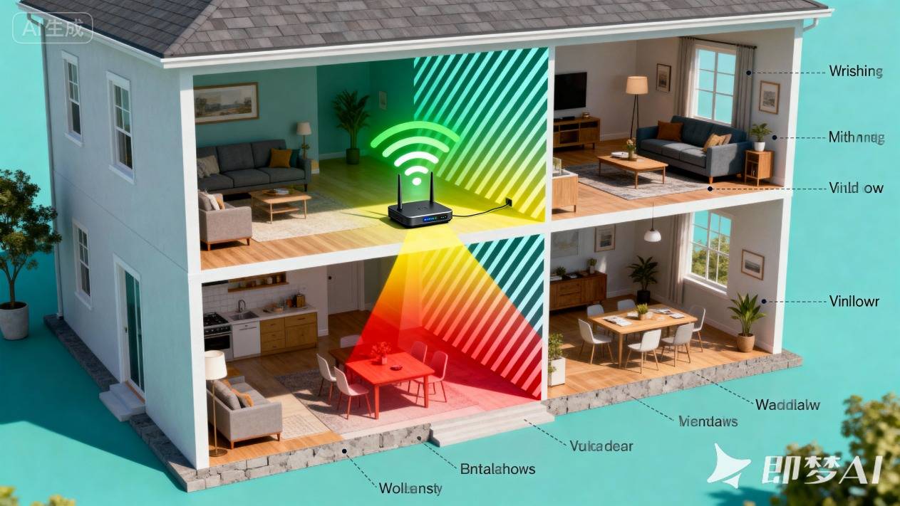 居中放置:将路由器放在你家户型图的几何中心位置,让信号向四周均匀覆盖。绝对不要把它塞在角落的弱电箱里!