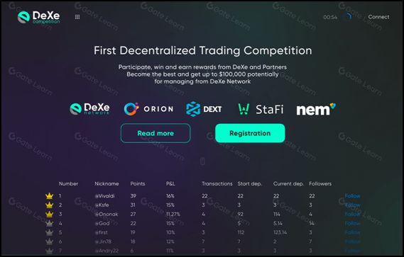DeXe Network 托管一个去中心化锦标赛服务应用程序,以展示去中心化社交交易如何帮助社区。去中心化锦标赛服务通过最大的以太坊去中心化交易所(DEX)Uniswap 运营,激励社区参与交易竞赛。