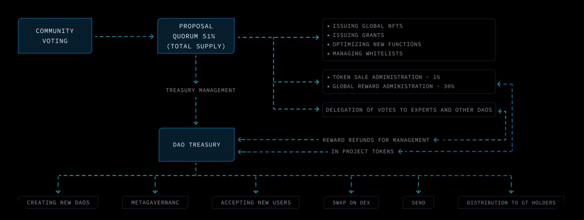 元治理:该平台允许来自专业子 DAO 的利益相关者在主 DAO 内发起提案,从而提升多样性。该机制支持普惠性决策和知情选择。
