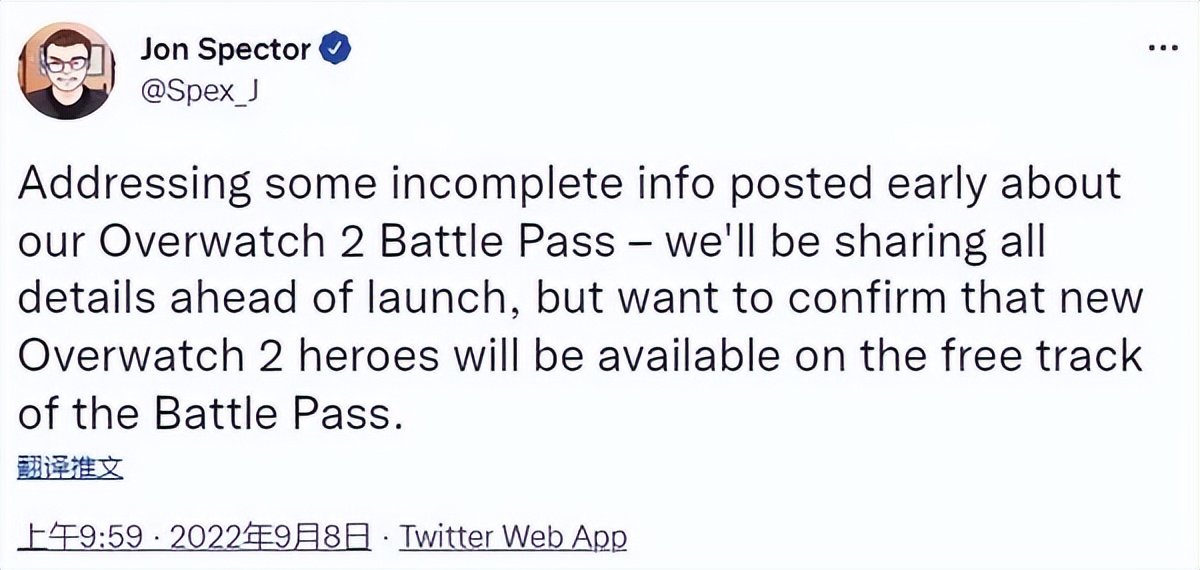 《守望先锋》商务主管 Jon Spector 近日表示,在《守望先锋2》中,新英雄将通过战斗通行证上的免费奖励获取。即使错过了战斗通行证,未来赛季中也会有其他免费途径获得新英雄。