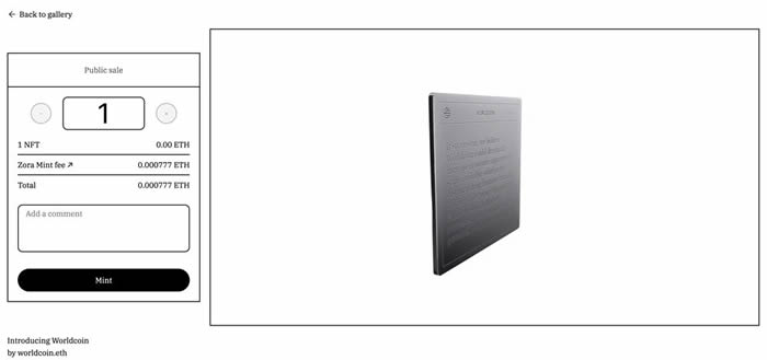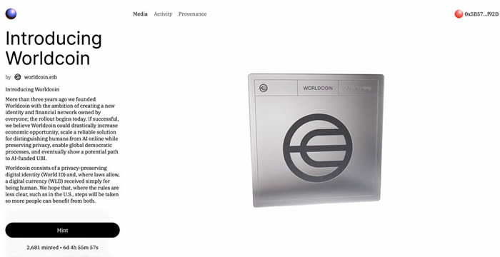 为了庆祝Worldcoin(WLD)代币的发行,官方在Zora平台上推出了一个特别的纪念版NFT。现在,你只需要支付Zora平台的手续费和燃料费,就能拥有它!这个铸造活动将在大约6天5小时后结束,目前已经有超过2600枚NFT被铸造,非常受欢迎。