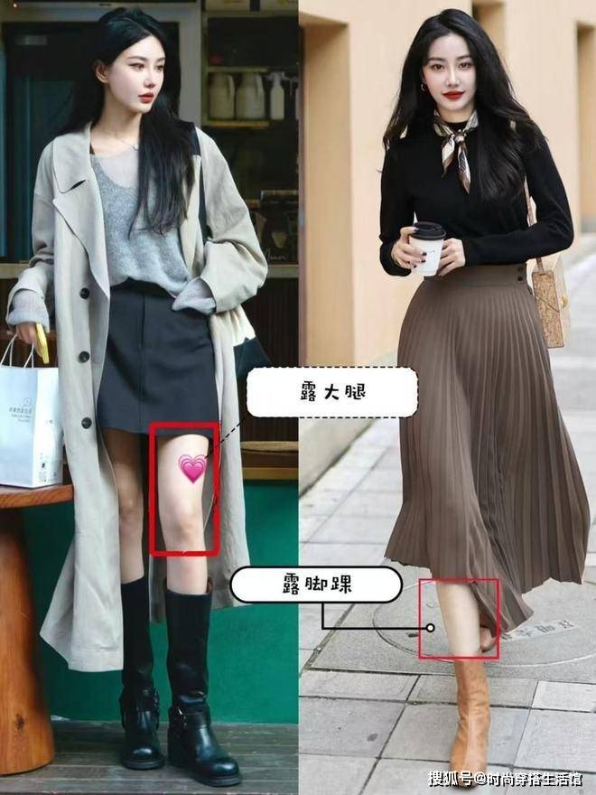 其次对于秋天早晚温差比较大,很多人会将穿搭捂得严严实实的,这样搭配方式只会更加的枯燥和沉闷,而且秋天的温度还没有很低,我们选择太厚实的穿搭只会更加的闷热,反之我们选择通过上装或者下装,能够适当的露出肌肤线条完美的搭配沉闷感,比如我们选择V领和九分裤或者半身裙,适当的露出锁骨和脚踝,能让我们的整个造型视觉上更加轻盈和显瘦。