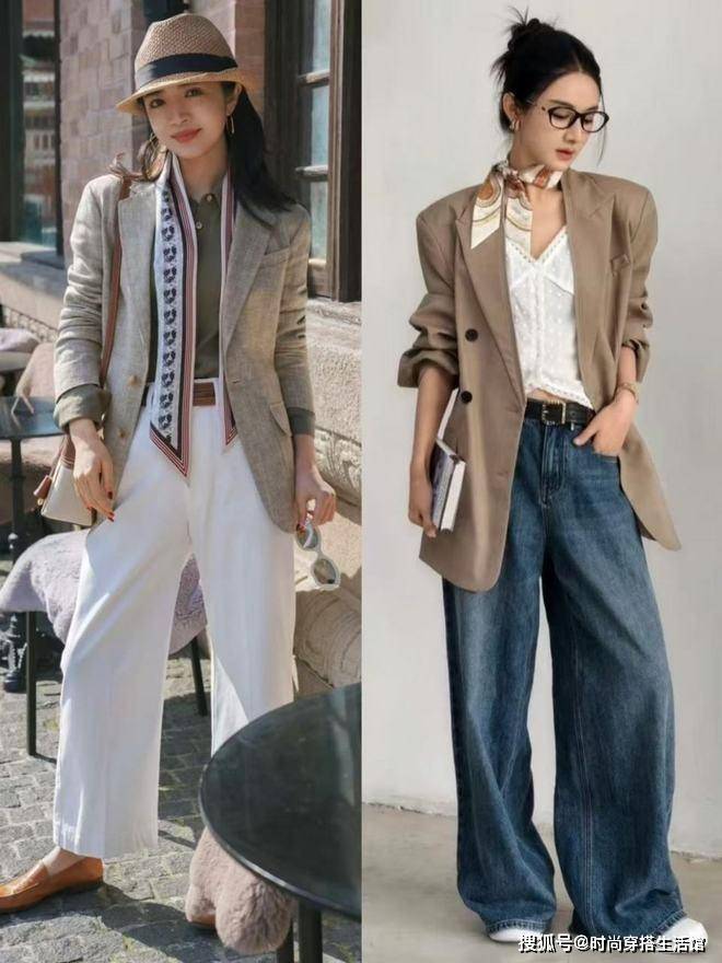 相对比传统的西装来说虽然是非常的百搭,但不管是款式还是设计方面都是比较严肃,完全不太适合日常穿搭凹造型。反之最近这几年流行的奶奶西装,融入了复古元素和简约的设计,版型方面更是宽松和松弛,国庆出游穿上除了正式感之外还带有休闲的时尚气息,完美的平衡了日常和职场的穿搭需求,不管是搭配裤子还是裙子都能轻松应对各种场合。