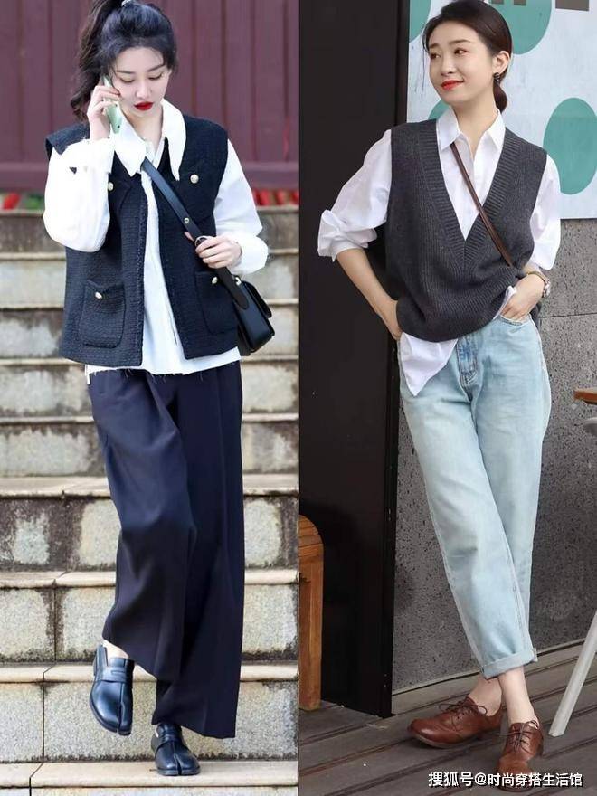 其次秋天穿短上衣搭配阔腿裤想要塑造出高级层次感的话,我们自然不能少了叠穿搭配,毕竟对于秋冬季节来说这种搭配方式不仅时髦洋气,同时还能凸显出层次感,尤其是露出内搭和下摆的位置,视觉上更加轻松摆脱路人感。比如像是衬衫叠穿打底衫或者是打底衫叠穿马甲等,整体搭配主次要分明,能够有效的避免整体造型的单调感。