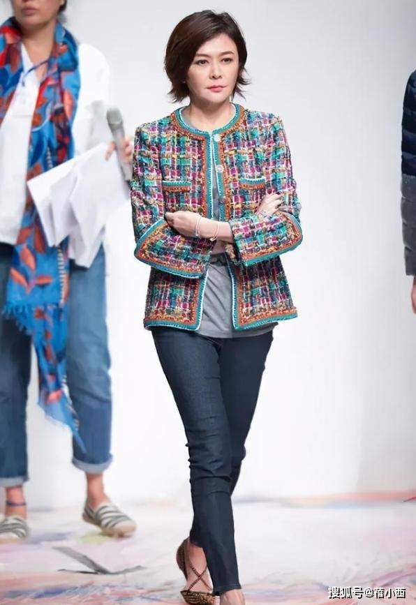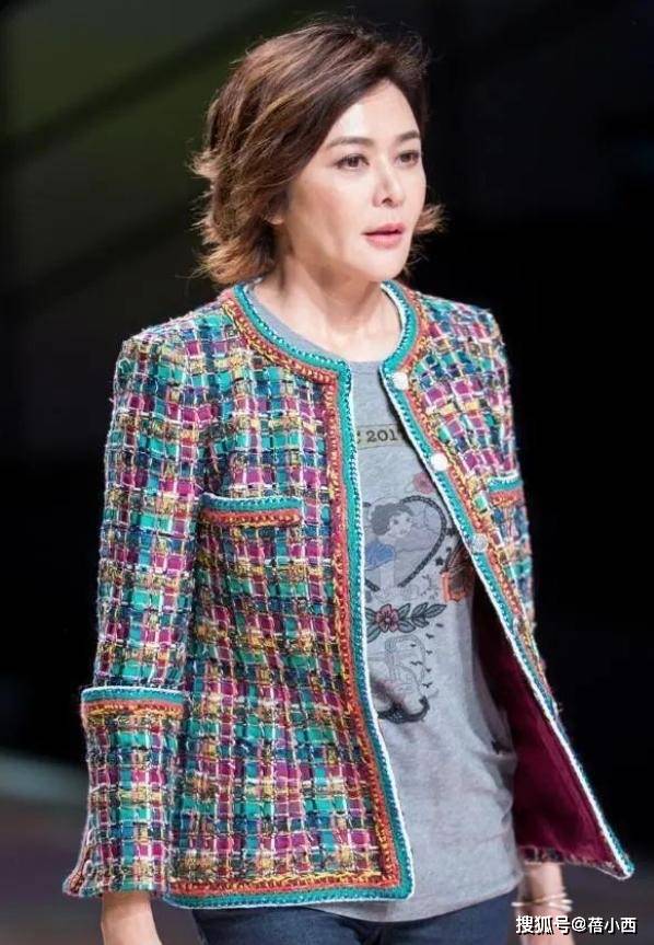 当彩色粗花呢外套邂逅灰色t恤与修身的牛仔裤,63岁的关之琳再次用穿搭诠释了“复古优雅永不过时”。这套造型的核心亮点当属彩色粗花呢短款小香风外套,外套的粗花呢材质自带高级的复古肌理,多种亮色交织的设计打破了传统粗花呢的沉闷感,蓝、粉、金等色彩碰撞出了活力与精致,圆领和金属纽扣的细节则凸显了经典的法式优雅。短款版型还可以拉高腰线,让身材比例更显利落,即便搭配长裤也丝毫不会拖沓。